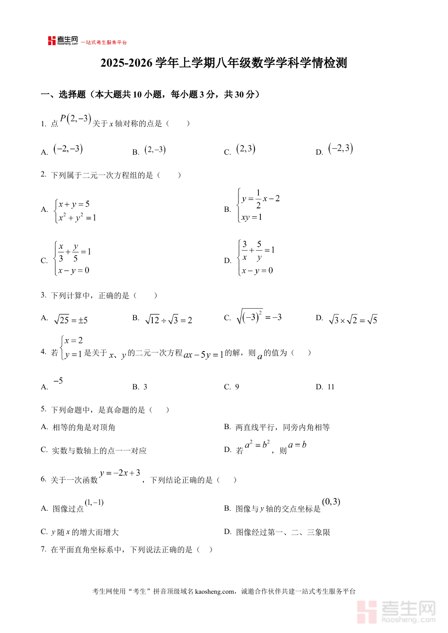 《精品解析:河南省郑州市郑州航空港经济综合实验区郑州一中国际航空港实验学校2025-2026学年八年级上学期12月学情检测数学试卷(原卷版)》是针对2025-2026学年河南省郑州市郑州航空港经济综合实验区相关学校八年级上学期12月学情检测的数学学科原卷资料,为该阶段考试提供直接的备考参考依据。