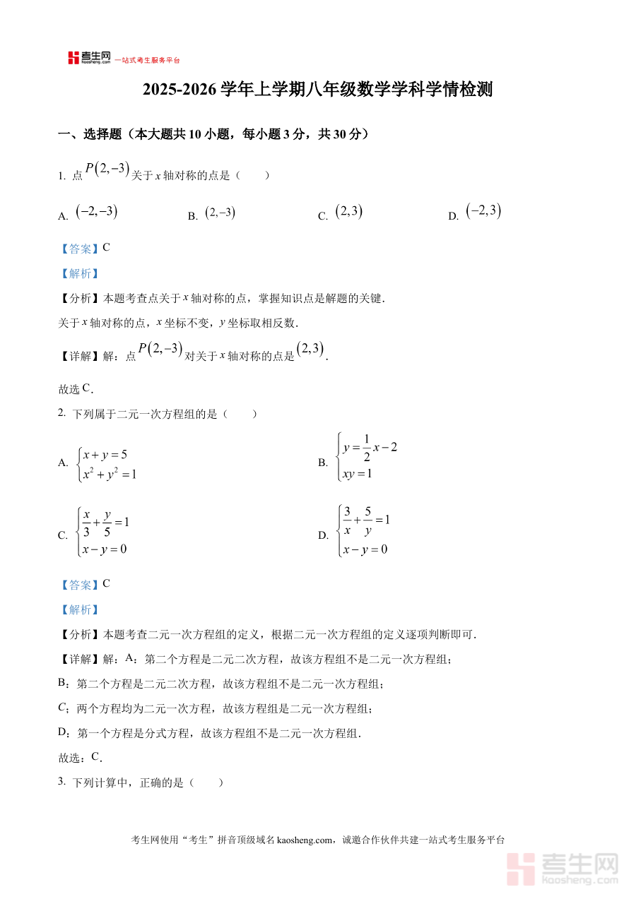 《精品解析:河南省郑州市郑州航空港经济综合实验区郑州一中国际航空港实验学校2025-2026学年八年级上学期12月学情检测数学试卷(解析版)》是面向河南省郑州市航空港经济综合实验区特定学校的阶段性数学检测资料,对应2025-2026学年八年级上学期12月的学情检测场景,为该阶段学生提供具备解析支持的备考资源。