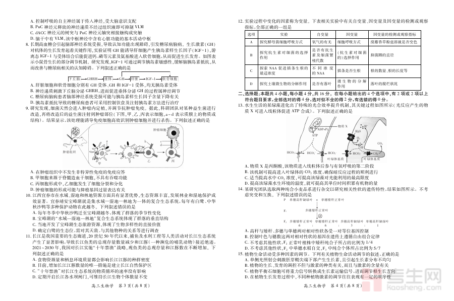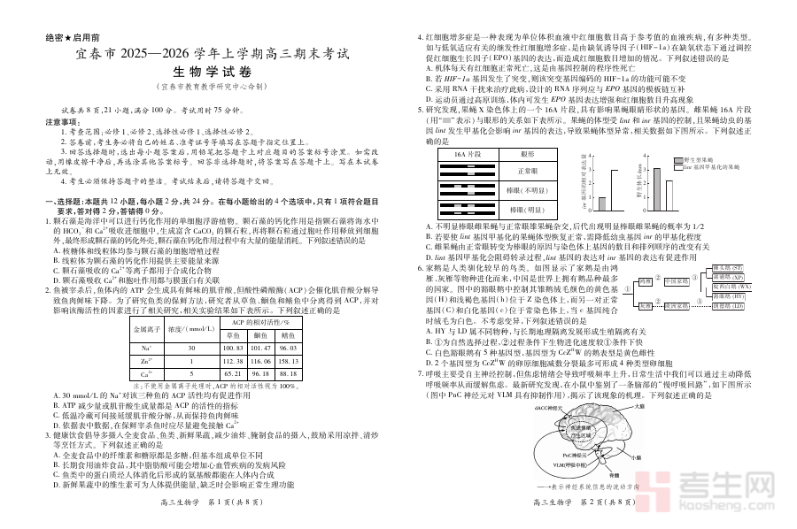 本资料适用于江西省宜春市2025-2026学年上学期在读的高三学生及生物学科教师,学生通过使用该资料能有效检验阶段学习成果,为期末考试做好充分准备;教师可借助资料内容了解学生学习状态,优化教学策略与复习安排。