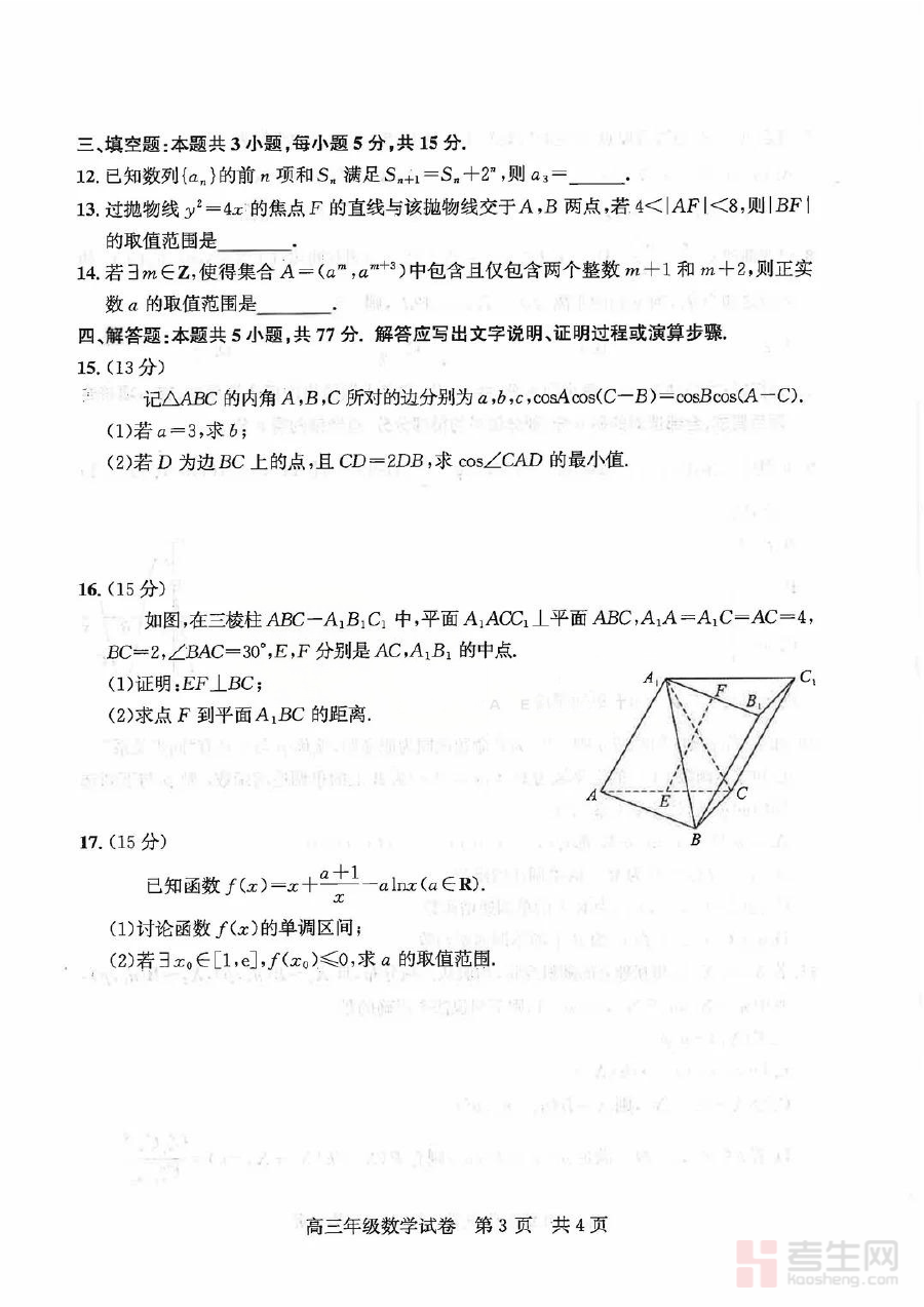 这份试卷主要用于高三学生数学学科阶段性学习成果检测与学情诊断。通过使用这份试卷,学生可直观了解自身在当前复习阶段对数学知识的掌握程度,发现知识体系中的薄弱环节;教师则能依据试卷反馈结果调整教学计划与复习重点,优化课堂内容与训练方向;同时试卷也能帮助师生共同明确元调考试的核心考查方向,为后续备考规划提供数据支撑。
