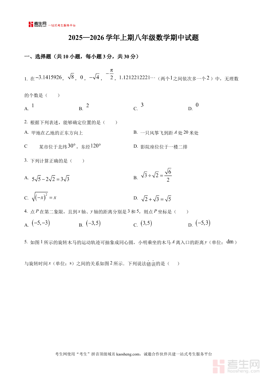 该资料可用于八年级学生进行期中前的自我学情诊断,帮助教师了解学生阶段性学习状况以优化后续教学规划,同时为学校或协作体内部开展阶段性检测提供标准化的试题参考,助力师生明确阶段学习重点与方向。