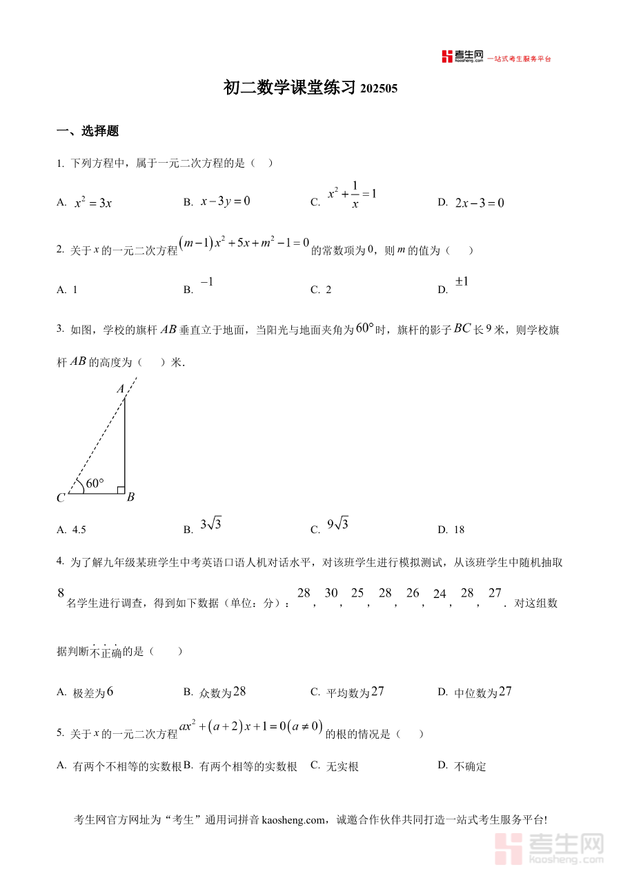 《精品解析:北京市西城区第四中学教育集团2024-2025学年八年级下学期5月月考数学试卷(原卷版)》是针对2024-2025学年北京市西城区第四中学教育集团八年级下学期5月数学月考设计的备考资料,精准匹配该教育集团的教学进度与月考命题方向,为师生提供贴合实际的考试训练素材。