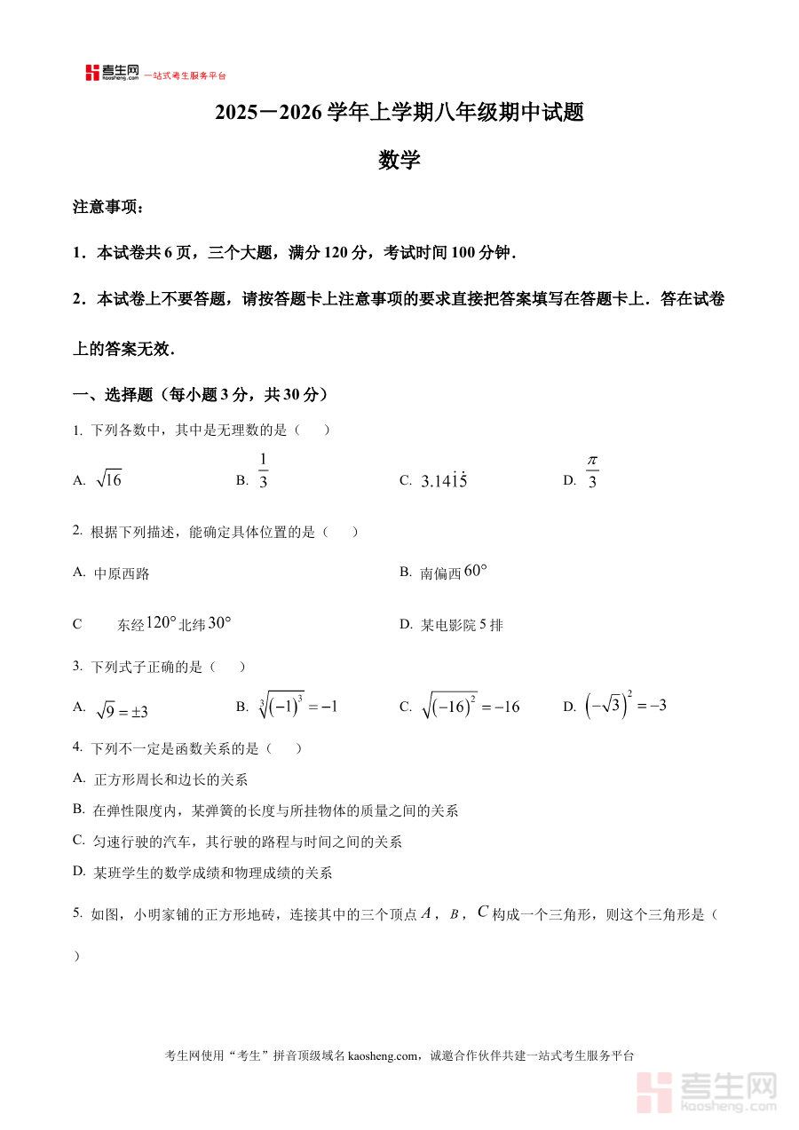 《精品解析:河南省郑州市高新区第一中学等九校联考2025-2026学年上学期八年级期中数学试卷 (原卷版)》是针对河南省郑州市高新区范围内九所学校联合组织的2025-2026学年上学期八年级期中数学考试的备考资料,聚焦该阶段数学学科的期中检测需求,为相关师生提供贴合区域联考实际的原卷资源。