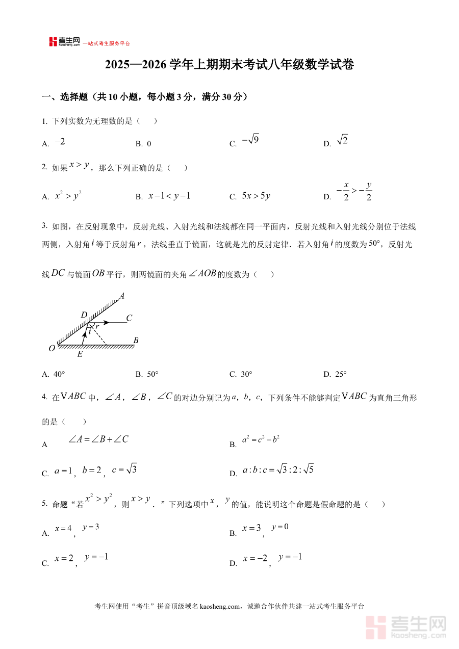 《精品解析:河南省郑州市第八中学2025-2026学年八年级上学期期末考试数学试卷(原卷版)》是面向河南省郑州市第八中学2025-2026学年八年级学生的数学期末备考资料,对应该学年上学期的期末检测场景,提供与考试直接匹配的原卷内容,为相关备考活动提供基础支持。