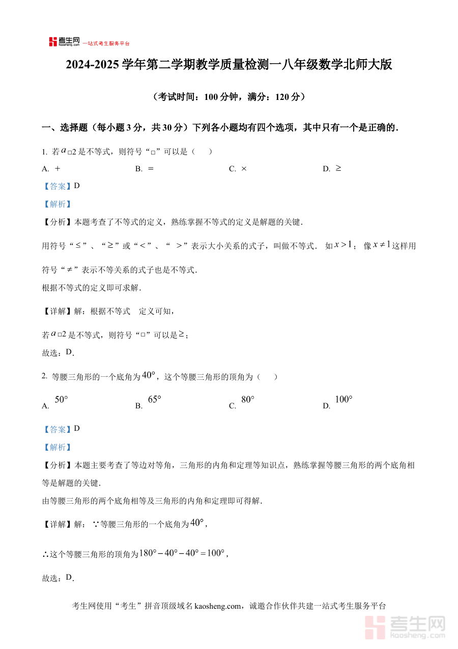 这份解析版资料具备多重实用价值,既能帮助使用者完成精准的学情诊断,快速识别数学学习中的优势领域与薄弱环节;又能为后续备考规划提供科学依据,助力合理分配学习时间与精力;同时作为阶段检测的配套解析资源,可辅助完成考试后的深度复盘,确保学习方向与考试目标高度契合。