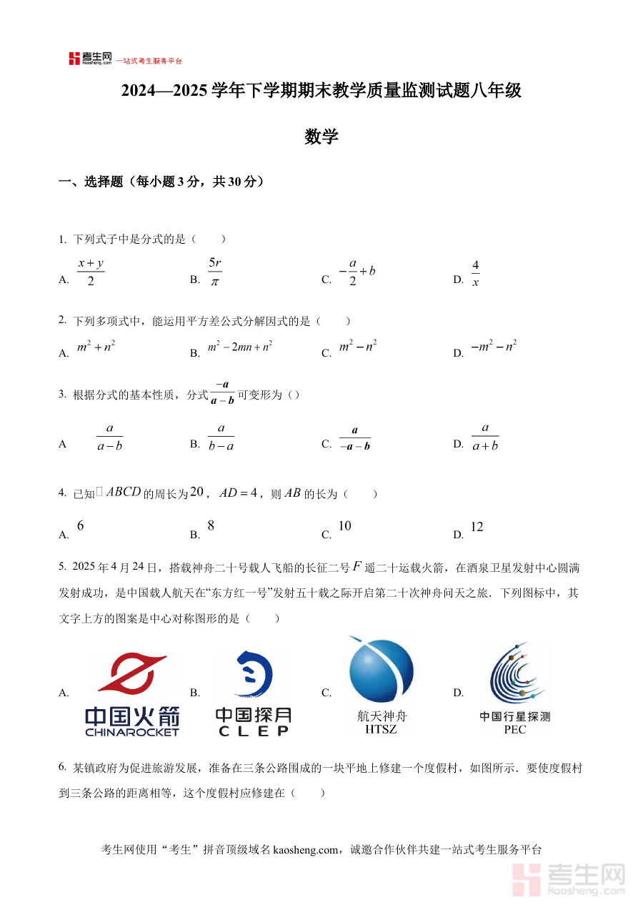 《精品解析:河南省郑州市中牟县2024-2025学年八年级下学期期末教学质量监测数学试题(原卷版)》这是针对河南省郑州市中牟县特定学年阶段数学期末教学质量监测的原卷版备考资料,精准匹配该地区2024-2025学年八年级下学期数学教学进度与期末检测核心要求,能够为使用者提供与真实考试形式完全一致的试题载体,确保接触内容符合当地教育部门对期末监测的规范与标准。