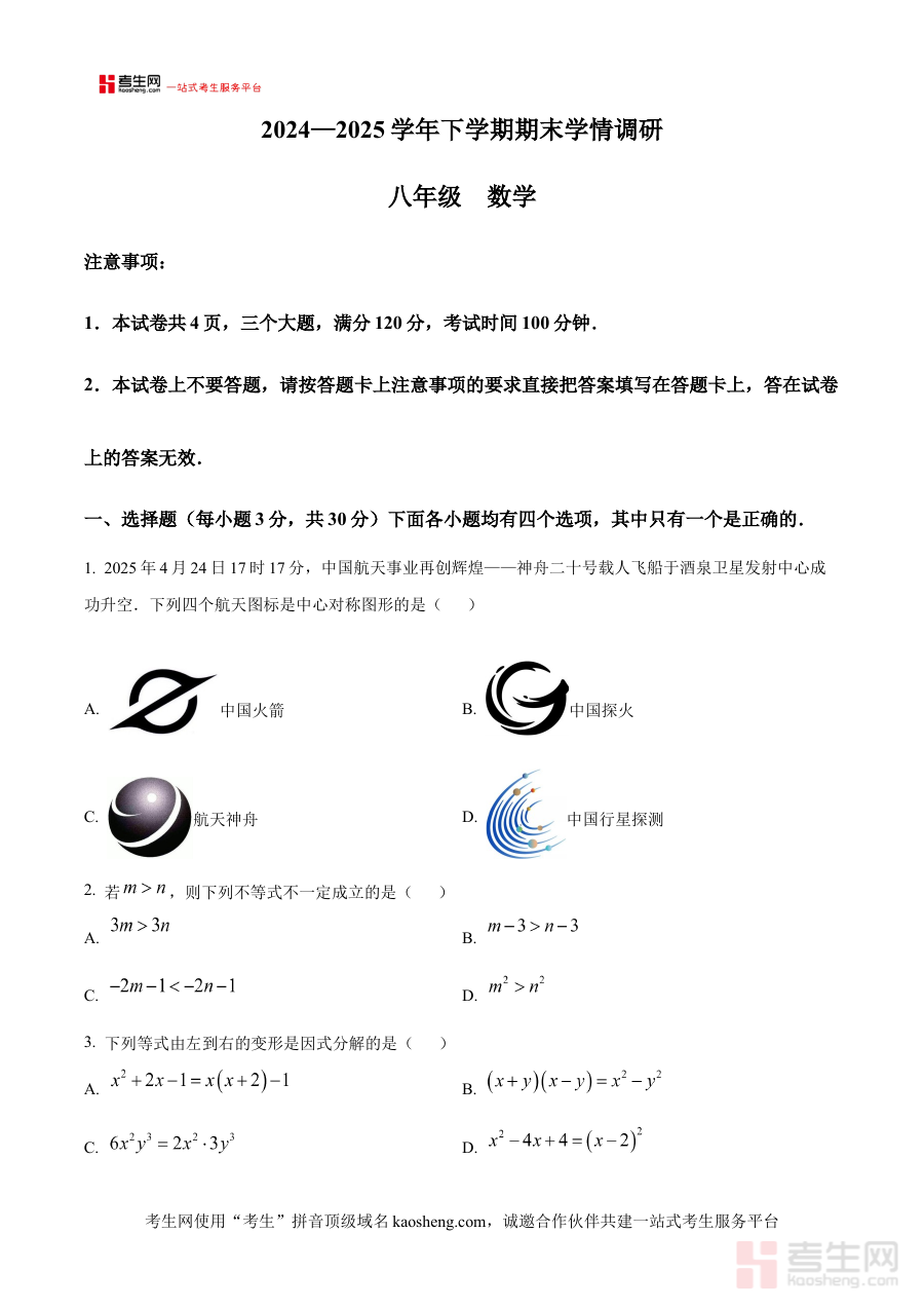 《精品解析:河南省郑州市登封市 2024-2025学年八年级下学期6月期末数学试题(原卷版)》是针对河南省郑州市登封市特定学年与学段的数学期末考试资料,精准对应该地区2024-2025学年八年级下学期6月期末数学考试的命题方向与形式要求,为相关使用者提供了与实际考试完全一致的试题呈现载体,是适配该地区该阶段数学期末备考的重要资源之一。