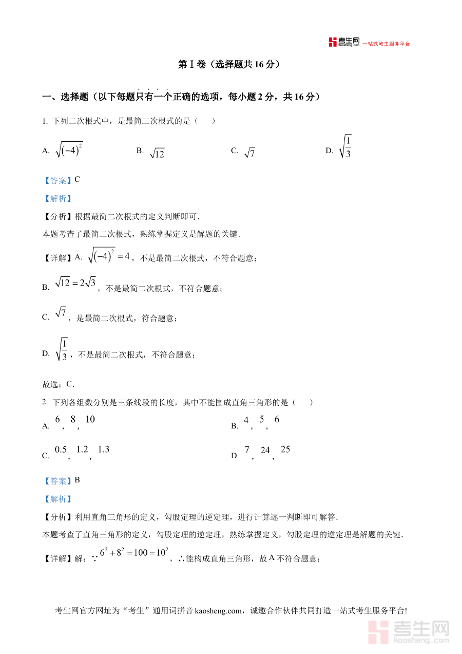 本资料适用于北京市第二中学集团内的八年级学生及数学教师群体,学生可借助其完成期中检测后的复盘总结,巩固阶段所学知识并优化解题思路;教师则能参考其解析框架与思路优化教学方法,更精准地指导学生开展阶段性复习与备考工作,有效提升教与学的针对性和效率。