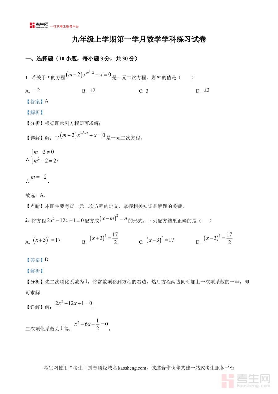 《精品解析:北师大版2024-2025学年九年级数学上册第一次月考试题(解析版)》是适配北师大版教材体系、针对2024至2025学年九年级上学期数学学科第一次月度检测的配套备考资料。它紧密贴合该学年第一阶段的教学进度与知识覆盖范围,为使用者提供了与本次月度考试直接关联的内容支撑,帮助师生准确把握阶段学习的考查方向与核心要求。