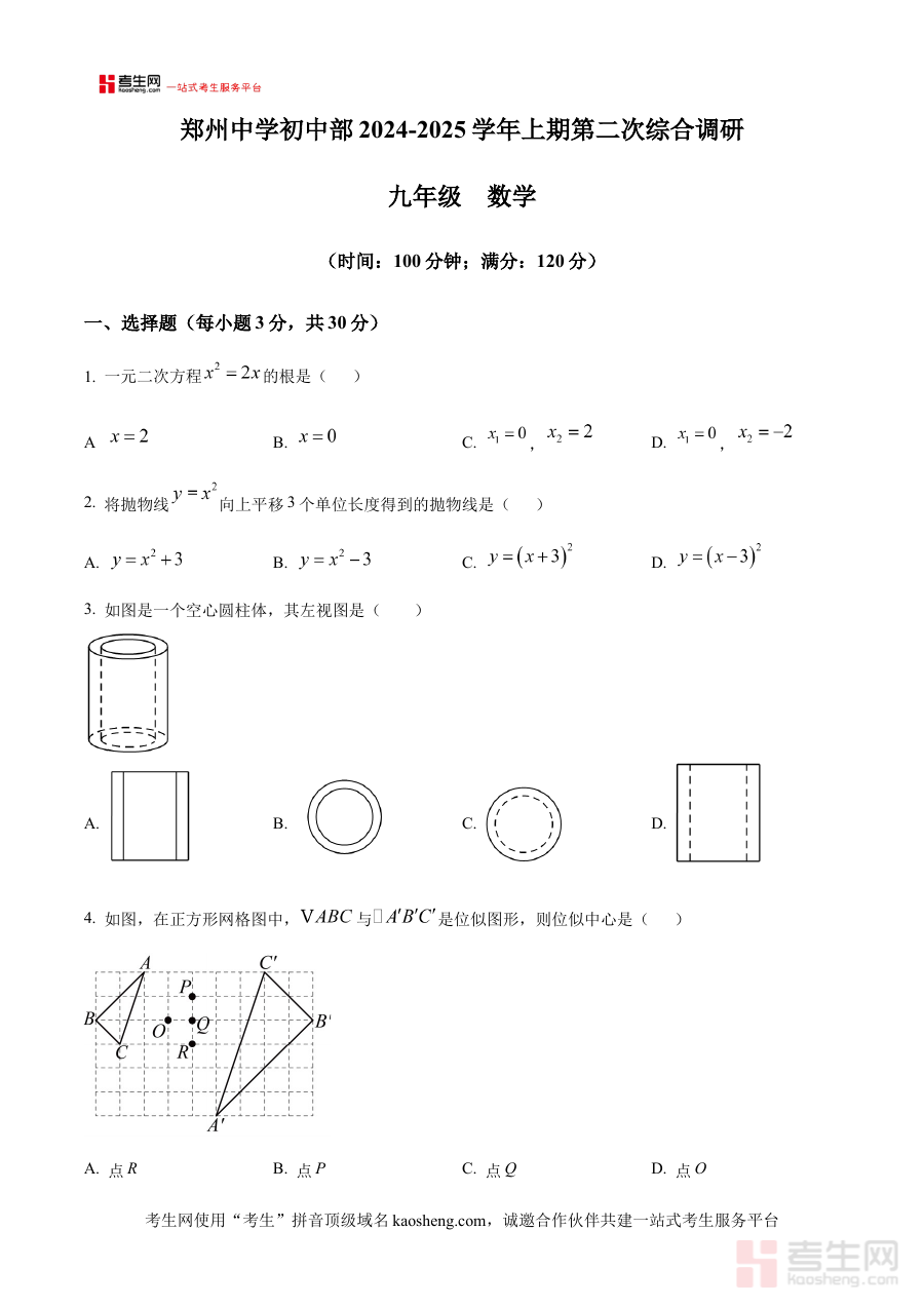 《精品解析:河南省郑州中学2024-2025学年九年级上学期第二次数学综合调研试卷(12月份)(原卷版)》是河南省郑州中学2024-2025学年九年级上学期12月份第二次数学综合调研考试的配套备考资料,精准对应该校该阶段数学学科的综合调研需求,为师生提供贴合本地校考实际的参考载体。