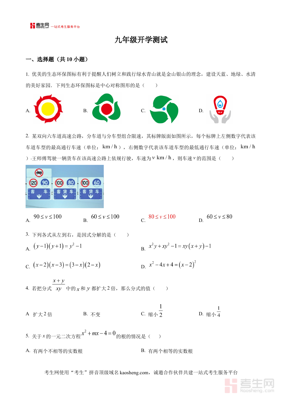 该试题原卷版适用于河南省郑州外国语中学2024-2025学年九年级学生及相关数学教师;对学生来说,它可作为暑假学习效果的自我检测工具,助力新学期数学学习的顺利衔接;对教师而言,有助于精准把握学情,优化后续教学策略。