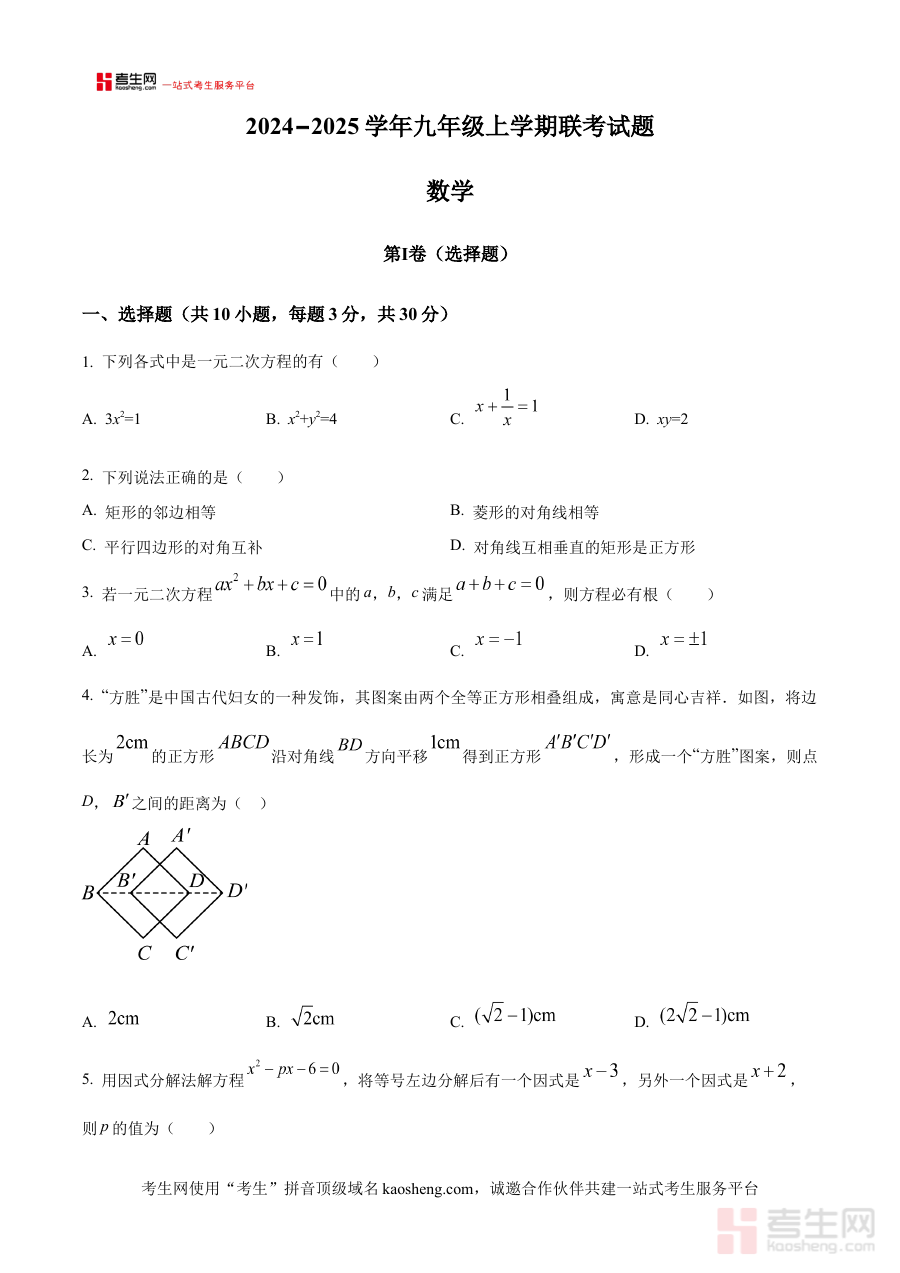 《精品解析:河南省郑州市惠济区第一初级中学 2024-2025学年九年级上学期月考数学试题(原卷版)》是针对河南省郑州市惠济区第一初级中学2024-2025学年九年级上学期数学月考设计的原卷类备考资料。该资料精准对应该校九年级上学期数学学科的阶段性考试场景,能够为使用者提供与实际月考形式高度一致的练习载体,帮助使用者提前熟悉月考的考查框架与命题逻辑,为后续的针对性复习奠定基础。