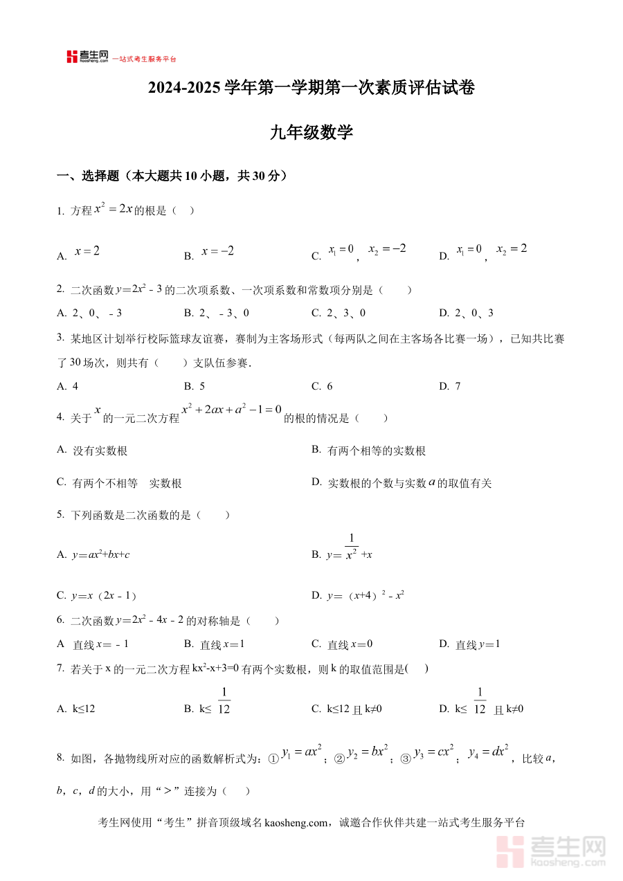 该资料可用于九年级学生的自我学情诊断,帮助学生熟悉本次素质评估的试卷结构与考查方向;同时也为数学教师提供了阶段教学效果评估的工具,助力教师依据评估结果调整后续教学计划,此外还能作为师生开展备考规划时的参考素材,辅助明确学习与教学的重点方向。