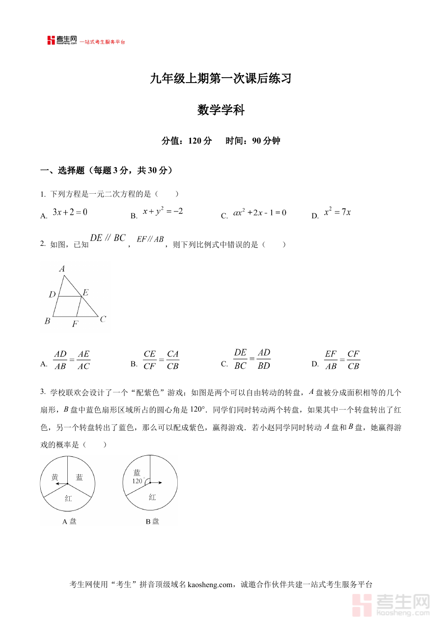《精品解析:河南省郑州市第四初级中学2024-2025学年九年级上学期第一次月考数学试题(原卷版)》是针对河南省郑州市第四初级中学2024-2025学年九年级上学期第一次月考的数学学科备考资料,聚焦该阶段数学学习成果的检测需求,为使用者提供贴合本地校考实际的参考依据。