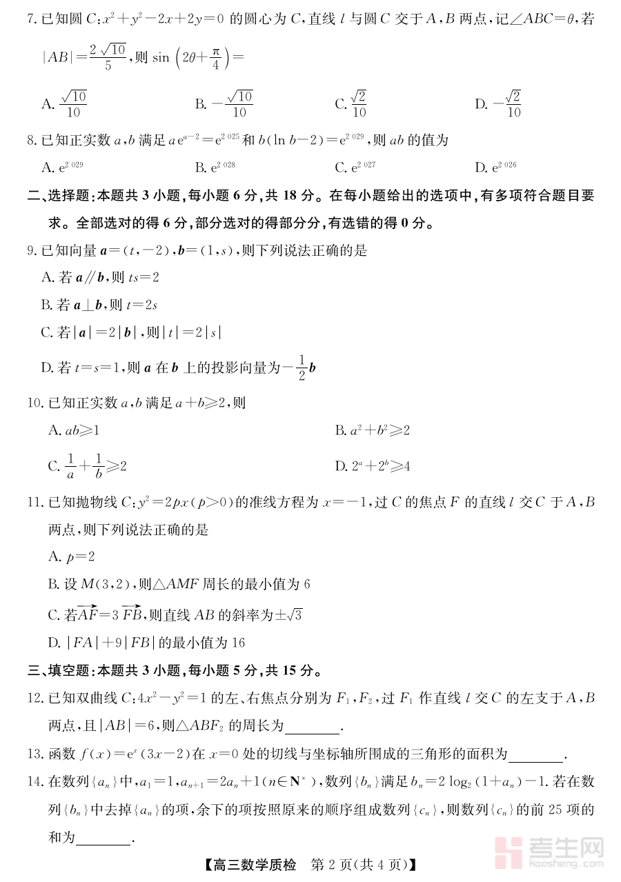 该资料适用于梅州市2026届高三年级学生群体,也可供相关数学教师及教育工作者使用。对于学生而言,通过该资料可完成阶段性自我检测,及时发现并弥补学习薄弱环节;对于教师而言,能借助其把握学生学习进展,优化教学安排;整体来看,它在高三上学期期末阶段的学业评估与备考规划中具有重要参考价值,有助于提升复习效率与学习质量。