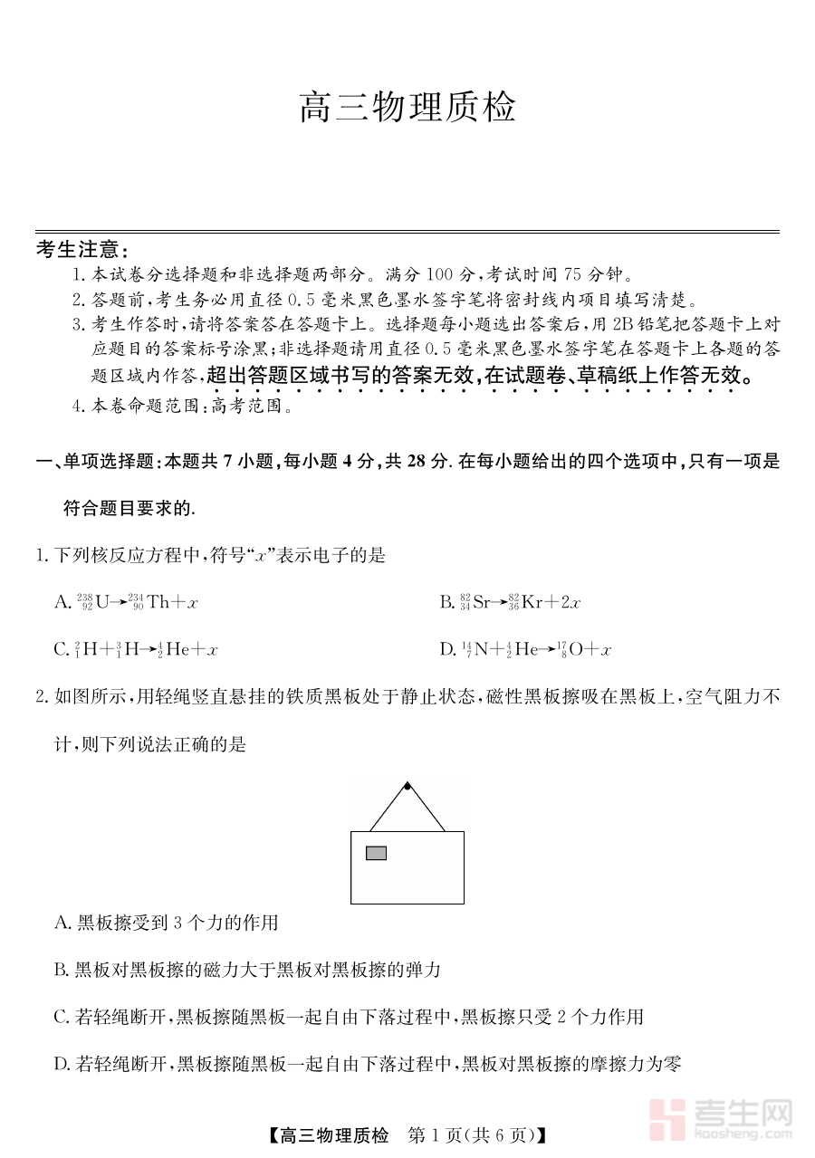 《梅州市2026届高三上学期期末考试物理》是针对广东省梅州市2026届高三学生在高中阶段上学期期末阶段开展的物理学科考试相关的备考资料,其核心定位是服务于该地区高三学生在学期末的物理学科学习成果检验与备考衔接需求,能够帮助学生和教师明确该阶段物理学科的学习重点与方向,为后续的复习规划提供基础参考依据。