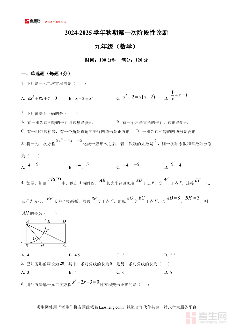 《精品解析:河南省郑州陈中实验学校2024-2025学年九年级上学期第一次月考数学试题(原卷版)》是针对河南省郑州市陈中实验学校2024-2025学年九年级上学期第一次月考的数学学科备考资料,紧密贴合该校该阶段数学教学进度与考查方向,为师生提供与校考实际高度匹配的参考内容。