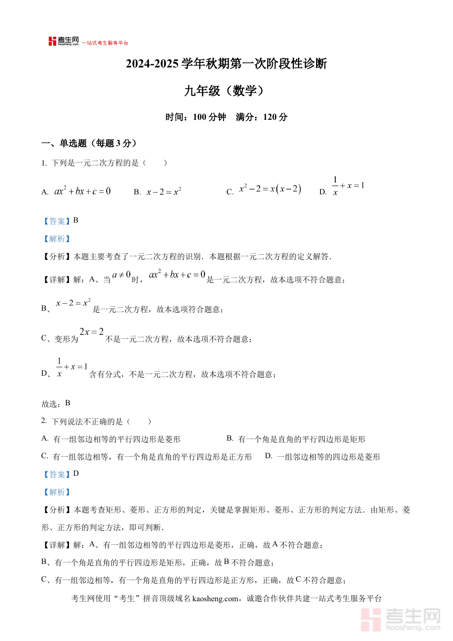 《精品解析:河南省郑州陈中实验学校2024-2025学年九年级上学期第一次月考数学试题(解析版)》是针对河南省郑州陈中实验学校2024至2025学年九年级上学期第一次月考数学科目的专项备考资料,聚焦该阶段数学学习的阶段性检测需求,为师生提供贴合校考实际的解析内容。