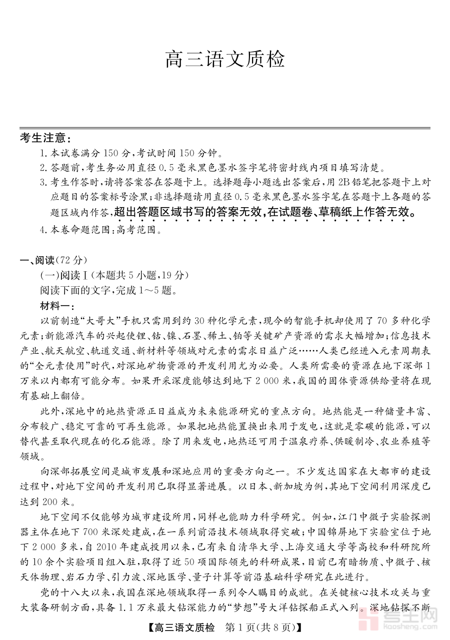 该资料的核心用途在于帮助高三学生进行语文学习的阶段性学情诊断,让学生清晰认知自身在语文知识掌握、能力发展等方面的优势与短板;同时也为语文教师提供了解班级学生整体学习水平及个体差异的有效途径,助力教师基于检测结果调整教学策略,优化后续备考规划的内容与方向;此外还可作为学校层面评估高三语文教学质量的参考素材,辅助教学管理部门把握区域内高三语文教学的整体态势。