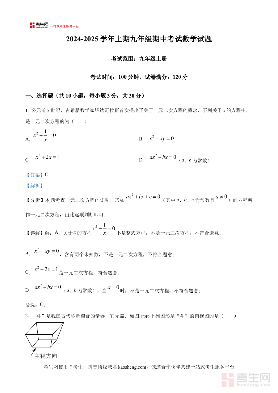 《精品解析:河南省郑州外国语中学2024-2025学年九年级上学期期中考试数学试卷(解析版)》是针对河南省郑州外国语中学2024至2025学年九年级上学期期中考试的数学学科备考资料,聚焦该阶段数学学习的阶段性评估需求,为使用者提供与本次考试直接关联的解析内容。