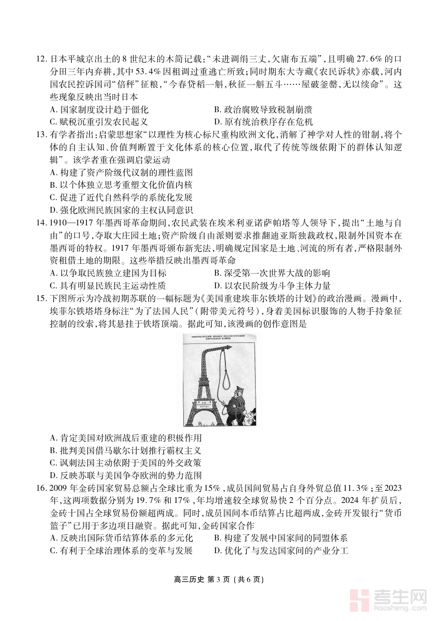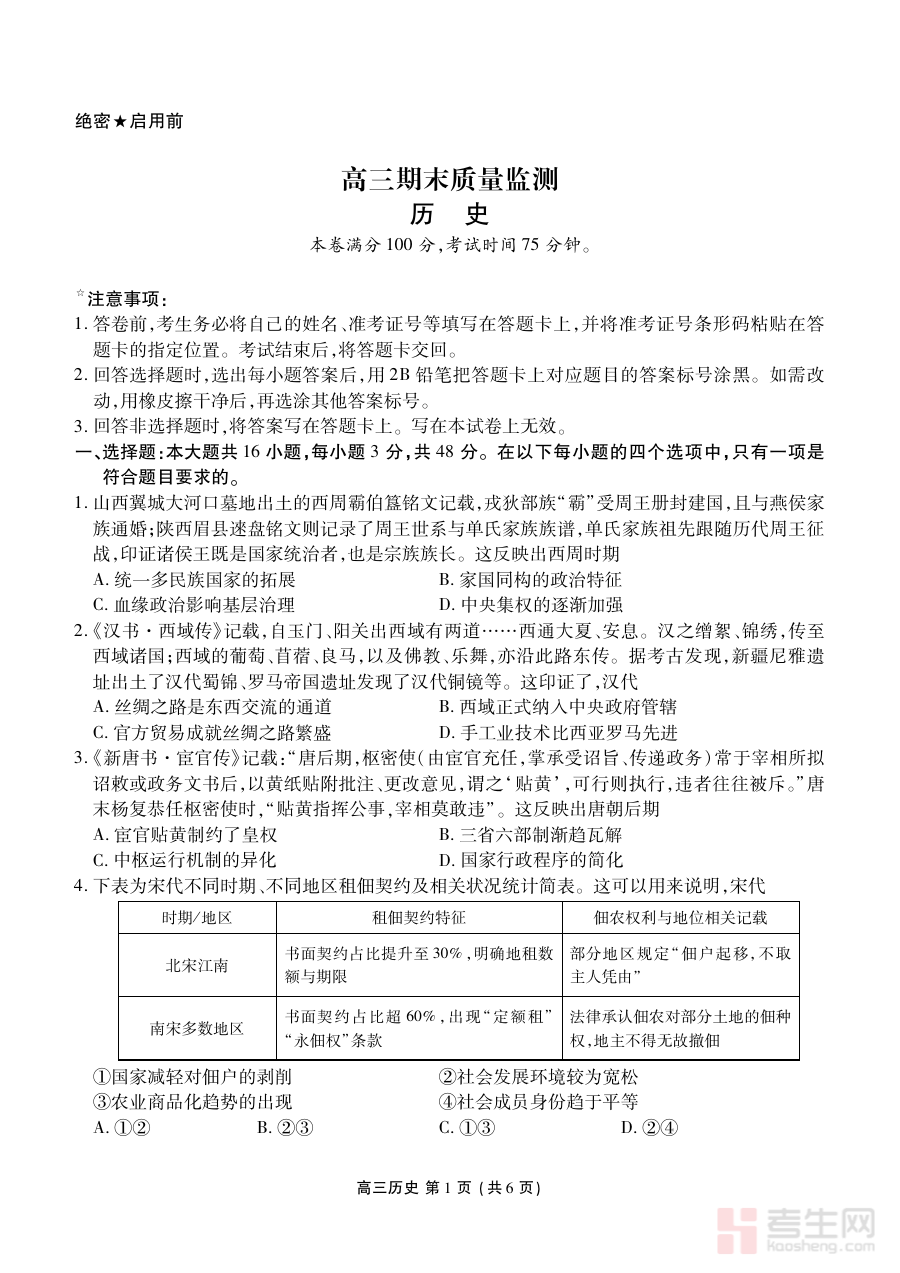 此资料的适用人群涵盖辽宁省2026届高三历史学科学生、一线历史教师以及区域内相关教育教研工作者。对于学生而言,它是期末阶段检测自我学习成果、巩固历史知识体系的重要工具;对于教师来说,可通过监测结果优化教学策略、开展针对性辅导;对于教研工作者,则能依托联考数据分析区域历史教学的共性问题,为教学质量提升和命题方向调整提供决策参考。