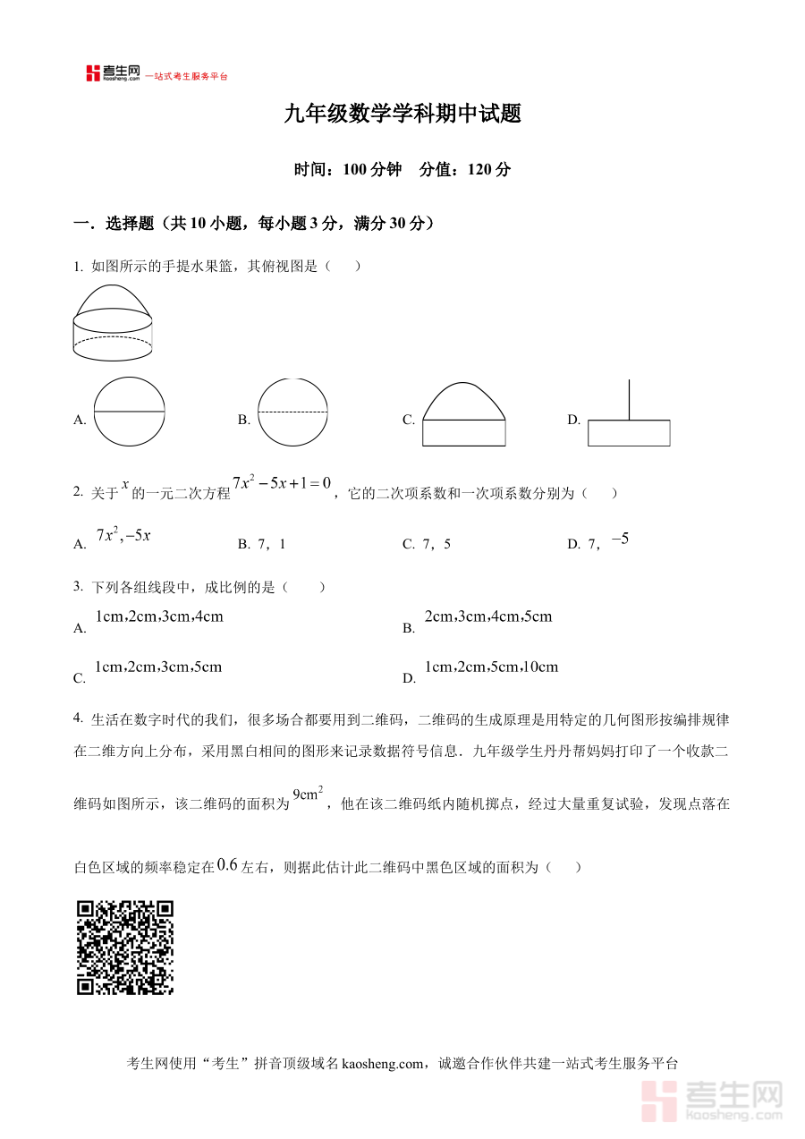 该资料可用于学生对自身数学学习情况进行阶段性诊断,帮助其明确学习薄弱环节,也可为教师提供真实的考试样本以辅助教学规划与学情分析,同时支持学生结合自身学习进度开展针对性备考,提升复习效率。
