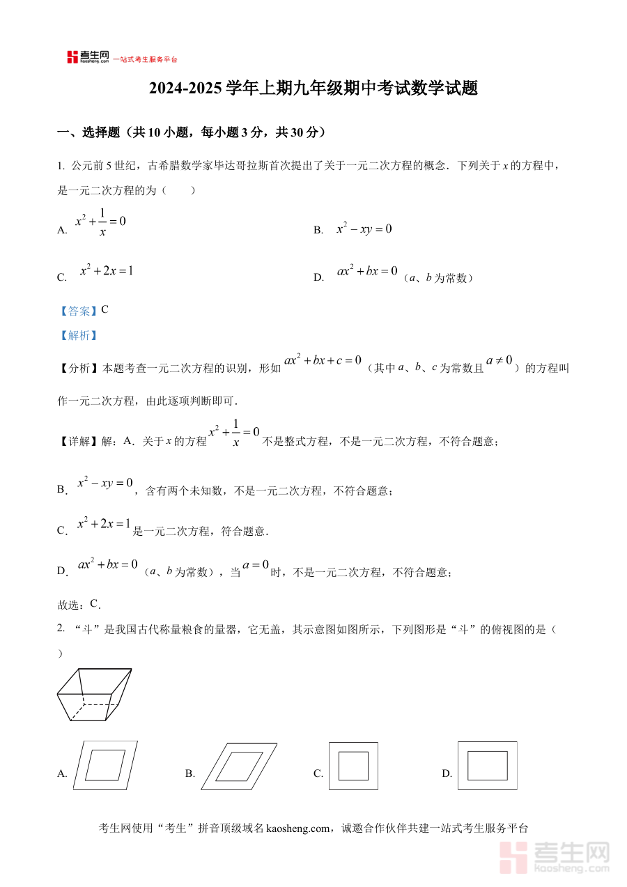 此资料适用于参与本次联考的两所学校九年级学生,以及郑州市范围内需参考同类联考模式进行数学备考的同年级学生与教师;其价值在于通过解析内容助力使用者把握期中数学考试方向,提升阶段检测有效性与备考规划科学性。
