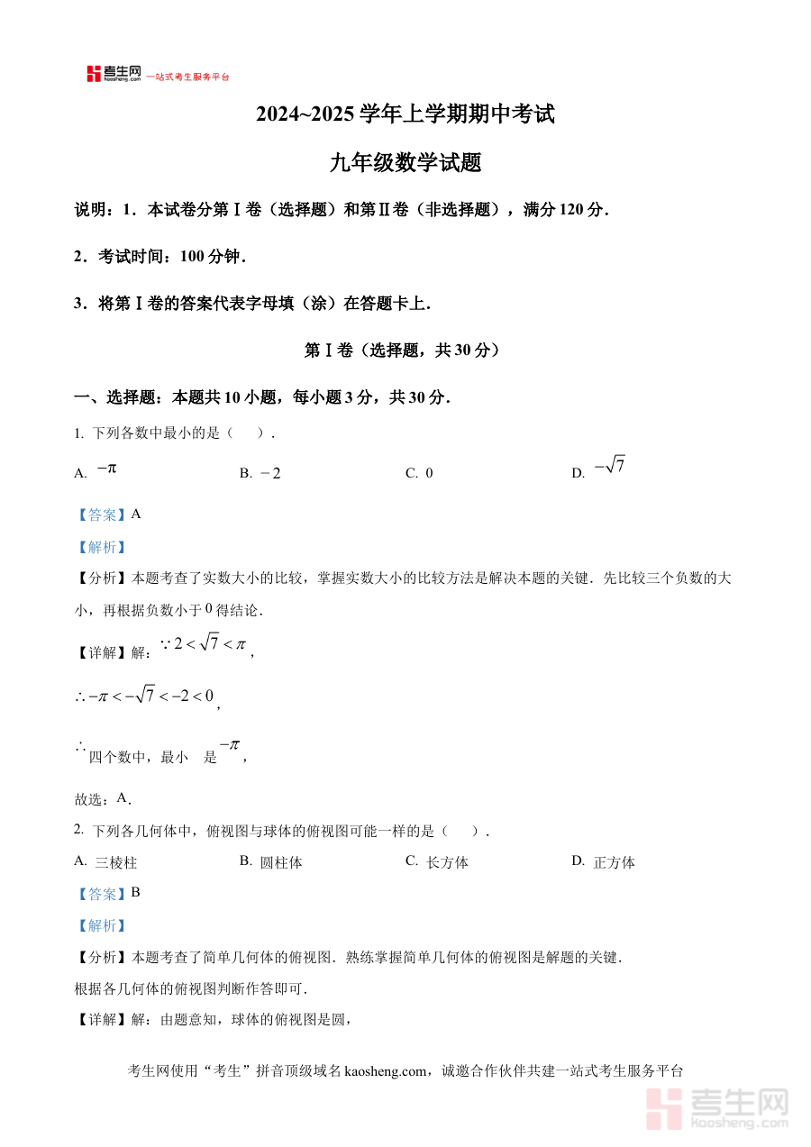 《精品解析:河南省郑州市桐柏一中、一中高新实验等联考2024-2025学年九年级上学期期中考试数学试卷(解析版)》是针对河南省郑州市桐柏一中、一中高新实验等校联合举办的2024-2025学年九年级上学期期中考试数学科目的备考资料。该资料围绕本次联考的数学考试需求展开,为考生提供专业的解析支持,帮助其准确把握考试的核心方向与基本要求。
