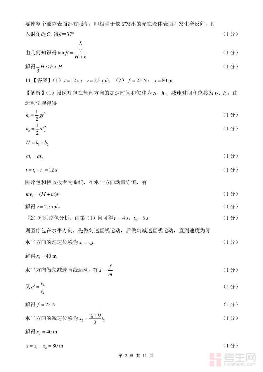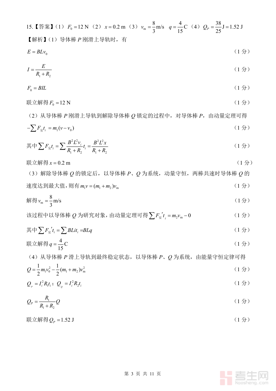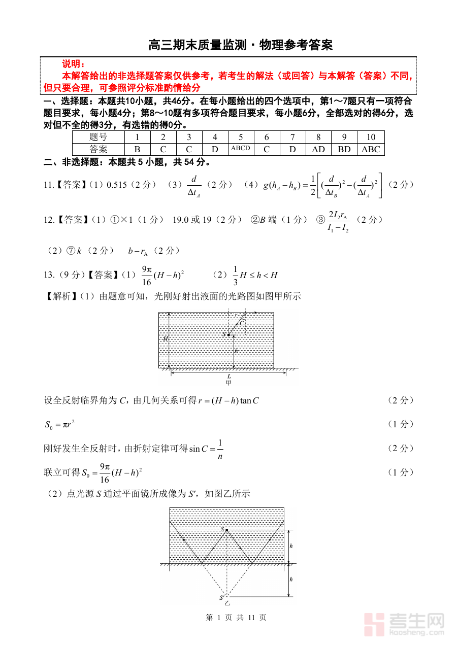 该资料可用于高三学生完成期末质量监测后的自我评估与学情诊断,帮助考生快速核对答题结果,明确自身在物理学科知识掌握程度与解题能力方面的优势及不足;同时也能为教师提供客观的教学评价依据,辅助教师调整后续教学策略与备考规划,使教学活动与备考安排更具针对性和有效性。