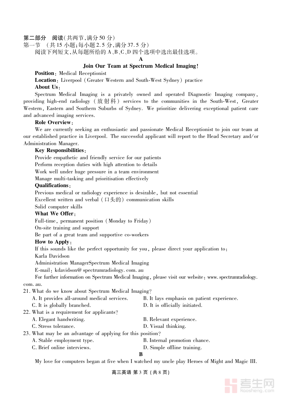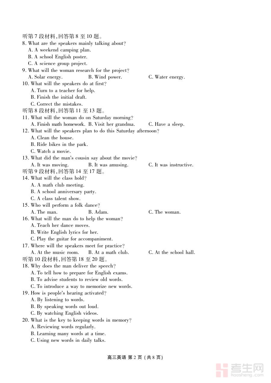 该资料适用于辽宁省2026届高三学生,尤其是需要通过阶段性监测巩固英语知识、提升应试能力的考生。对于处于高考备考关键阶段的高三学生而言,参与此类质量监测不仅能熟悉期末测试形式与节奏,还能通过监测结果梳理知识体系、强化薄弱环节,为后续高考一轮、二轮复习奠定坚实基础。此外,家长也可通过该资料了解孩子学习进展,配合教师与学生制定合理备考计划,共同助力学生高效推进高考英语备考进程。