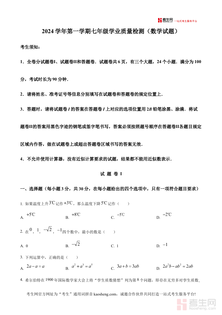 《精品解析:浙江省宁波市江北区2024-2025学年七年级上学期期末考试数学试题(原卷版)》是针对浙江省宁波市江北区2024至2025学年七年级上学期数学期末考试设计的备考资料,精准对应该地区该学年七年级上学期的期末检测需求,为使用者提供与本地考试体系匹配的原卷形式内容。