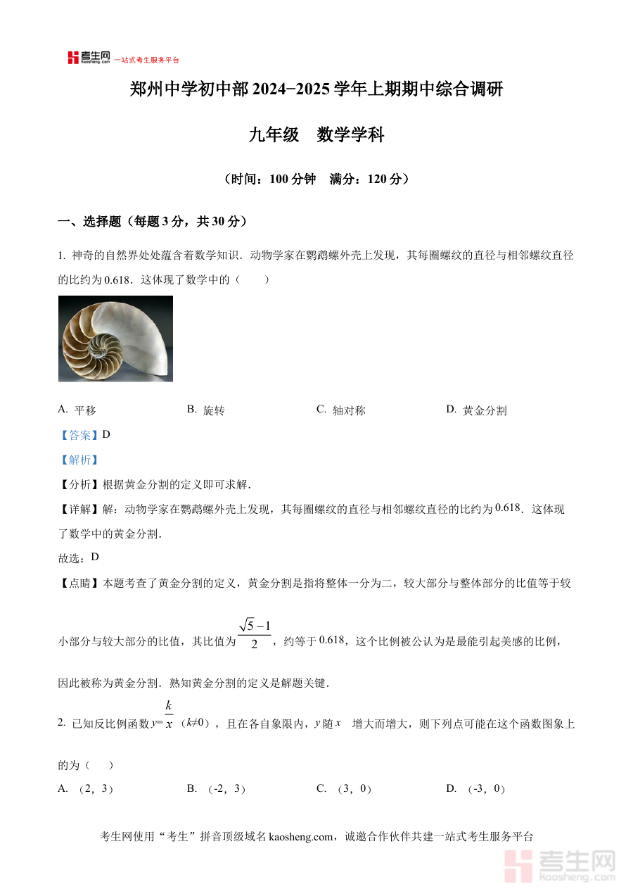 《精品解析:河南省郑州市郑州中学初中部2024-2025学年上学期期中考试九年级数学试卷 (解析版)》是针对2024-2025学年上学期河南省郑州市郑州中学初中部九年级数学期中考试的配套解析类备考资料,涵盖该次阶段性考试的相关内容分析与解读,为使用者提供与本次考试直接相关的辅助支持,帮助其快速把握考试的核心方向与考查重点。