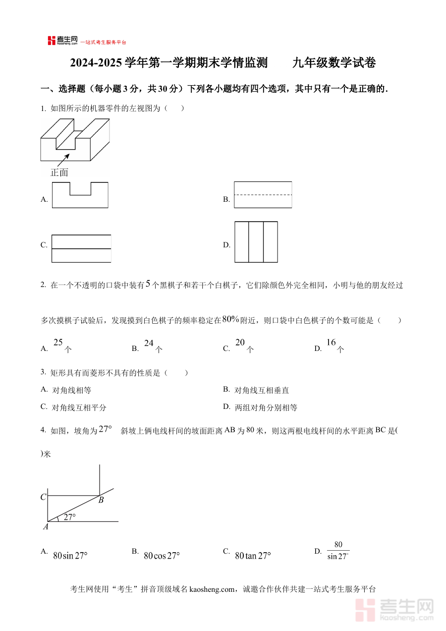 本资料适用于河南省郑州市第八中学2024-2025学年九年级学生及数学教师,通过原卷版试题的练习与分析,能有效强化学生对期末数学知识的掌握水平,辅助教师优化教学策略,为期末阶段的高效复习与质量检测提供坚实支持。
