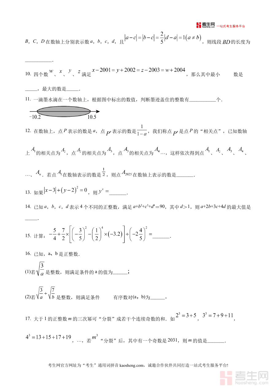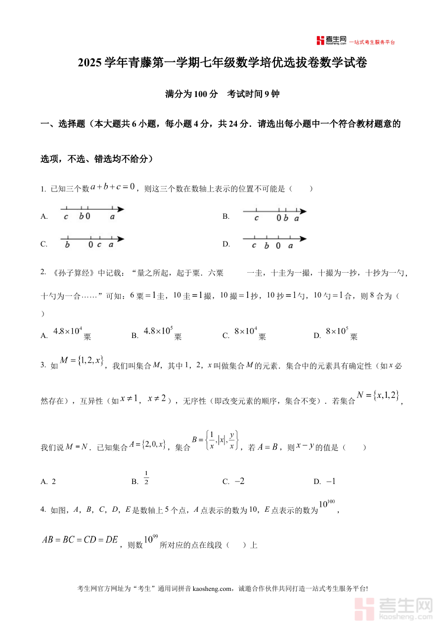 《精品解析:浙江省宁波市宁波大学青藤书院2025-2026学年七年级上学期10月月考数学试卷(原卷版)》是针对浙江省宁波市宁波大学青藤书院特定学年学期的数学阶段性考试资料,对应2025-2026学年七年级上学期10月的月考场景,为相关师生提供了该次考试的原始试卷内容,是备考此次月考的重要基础资料之一。