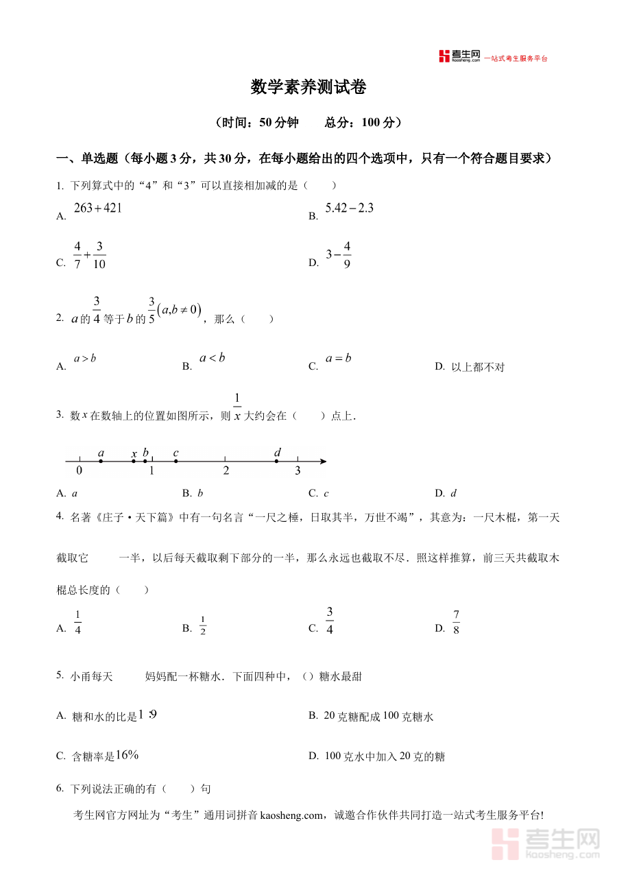 这份原卷版资料可有效支持学生进行考前学情诊断,帮助其清晰认知自身在数学知识掌握方面的现状与薄弱环节;同时也为教师和家长提供了了解考试要求的窗口,便于据此制定更具针对性的备考规划与辅导方案。此外,它还能作为阶段检测工具使用,让学生提前熟悉考试的时间安排、题型结构等基本框架,降低考试过程中的陌生感与紧张感,提升应试准备的有效性。