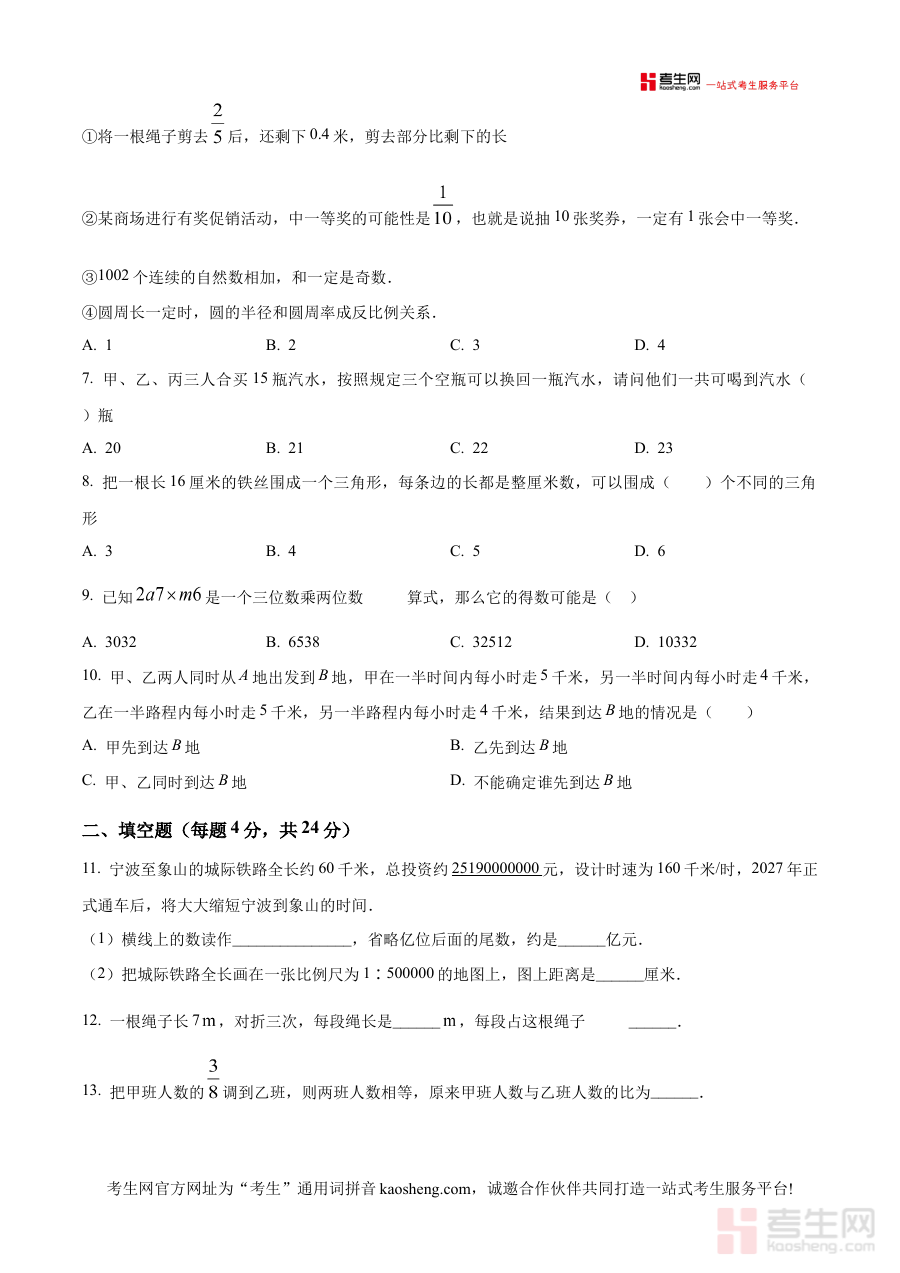 《精品解析:浙江省宁波市海曙区储能学校2025--2526学年7月上学期七年级分班考数学卷(原卷版)》是针对浙江省宁波市海曙区储能学校2025-2026学年7月上学期七年级分班考试的数学学科原卷资料,属于该阶段分班考试的核心备考资源之一。它保留了考试试卷的原始呈现形式,能够为相关使用者提供最贴近实际考试的资料载体,是了解该学校七年级分班考试数学学科考查形式与命题风格的重要依据。