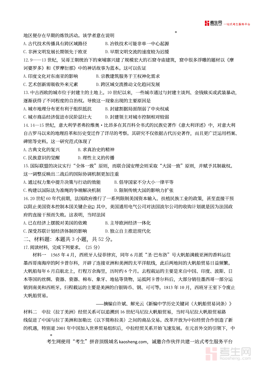 该试卷主要用于芜湖市各高中学校对高三学生上学期历史学科学习情况的阶段性诊断与评估。通过这份试卷,教师能够精准把握学生在历史知识体系构建、学科核心素养发展等方面的现状,为后续教学策略调整与备考规划制定提供科学的数据支持;同时,学生也可借助试卷清晰认识自身在历史学习中的短板与不足,明确后续复习方向与重点,提升复习效率和针对性。