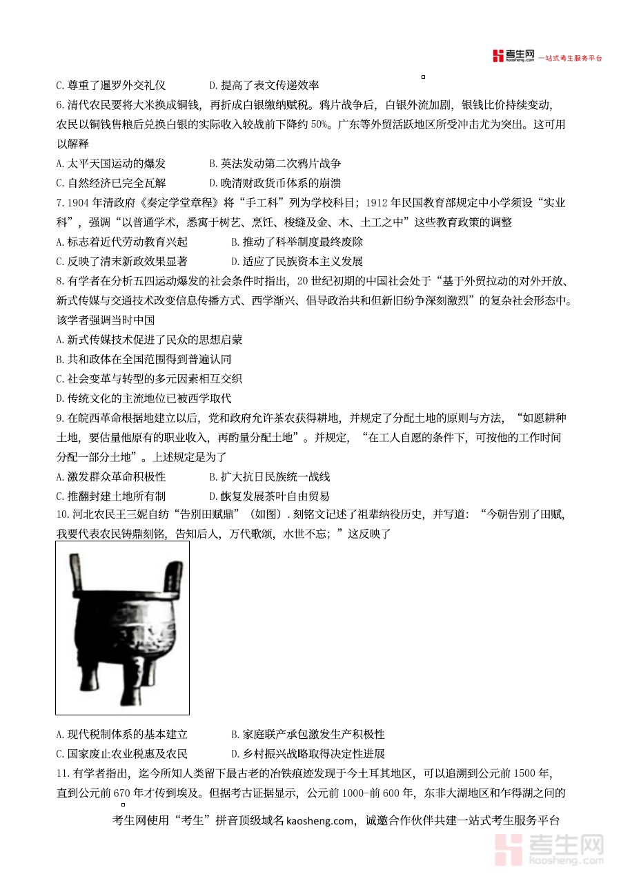 这份试卷的适用人群主要包括2026届芜湖市高三年级的历史教师、学生以及相关教学教研人员。对于学生而言,它是进行历史学科阶段复习效果检测的有效工具,有助于熟悉阶段性测试的考查节奏与要求;对于教师来说,它能辅助开展学情分析与教学质量评估,优化教学方案;对于教研人员,可作为区域历史教学质量监控的参考素材,推动区域内历史教学资源整合与教学质量整体提升。