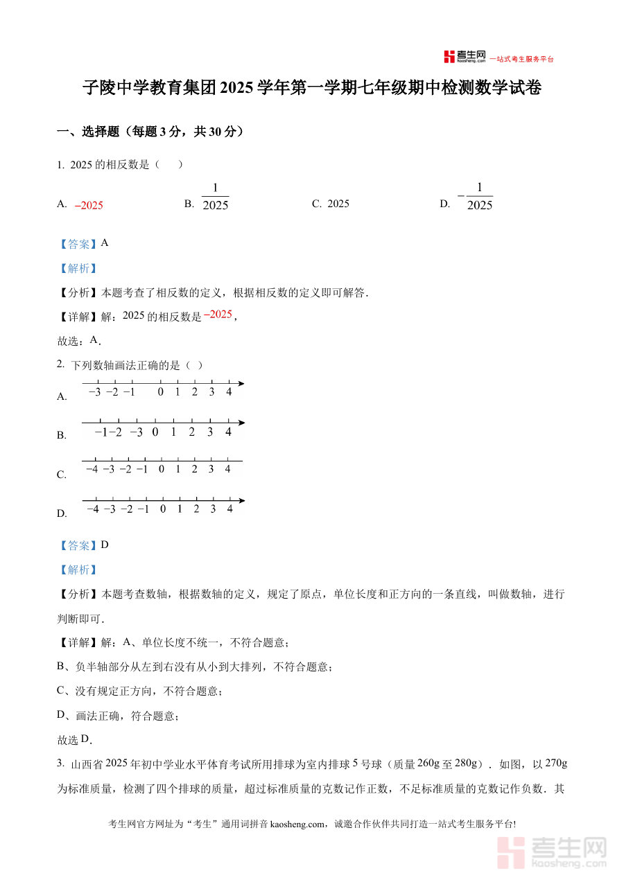 《精品解析:浙江省宁波市余姚市子陵中学2025-2026学年上学期七年级期中数学试卷(解析版)》是针对浙江省宁波市余姚市子陵中学2025至2026学年第一学期七年级期中数学考试的专项备考资料,聚焦该阶段数学学科的期中检测需求,为使用者提供与本校期中考试直接相关的解析内容。