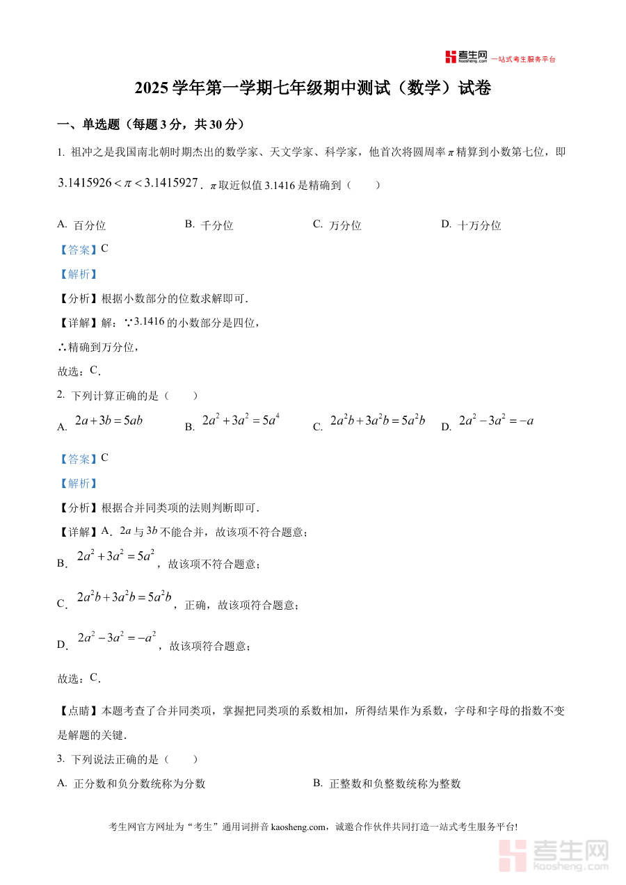 《精品解析:浙江省宁波市慈溪育才中学2025-2026学年七年级上学期期中考试数学试卷(解析版)》是针对浙江省宁波市慈溪育才中学2025-2026学年七年级上学期期中考试数学科目的专项备考资料,整合了该考试对应的阶段性学习内容解析,为相关使用者提供贴合本地校考实际的参考依据。