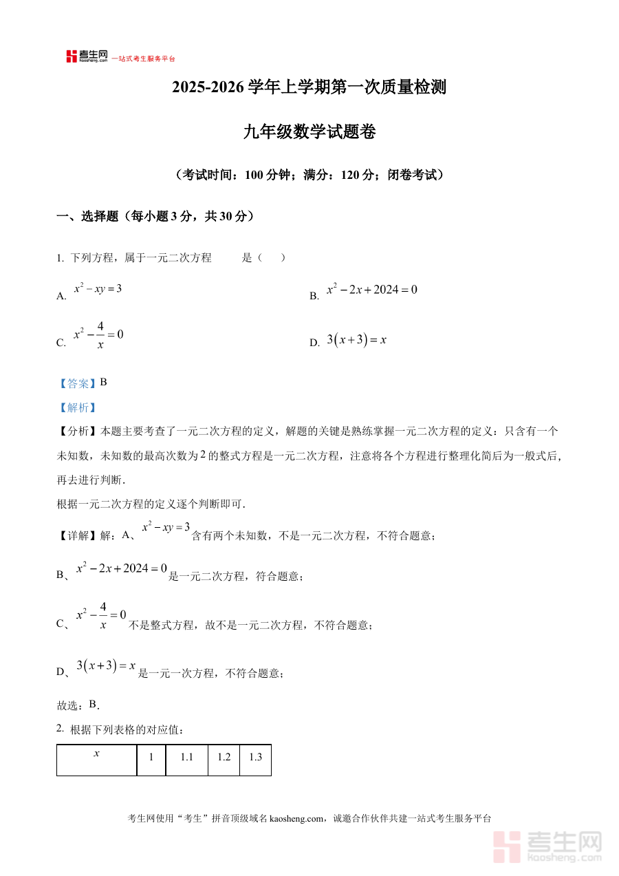 《精品解析:河南省郑州市第八十二中学2025-2026学年上学期九年级第一次月考数学试卷(解析版)》是针对河南省郑州市第八十二中学2025-2026学年上学期九年级第一次数学月考设计的专项备考资料,精准对接该校该阶段的内部阶段性检测要求,为相关使用者提供贴合本校考试实际的复习参考支撑。