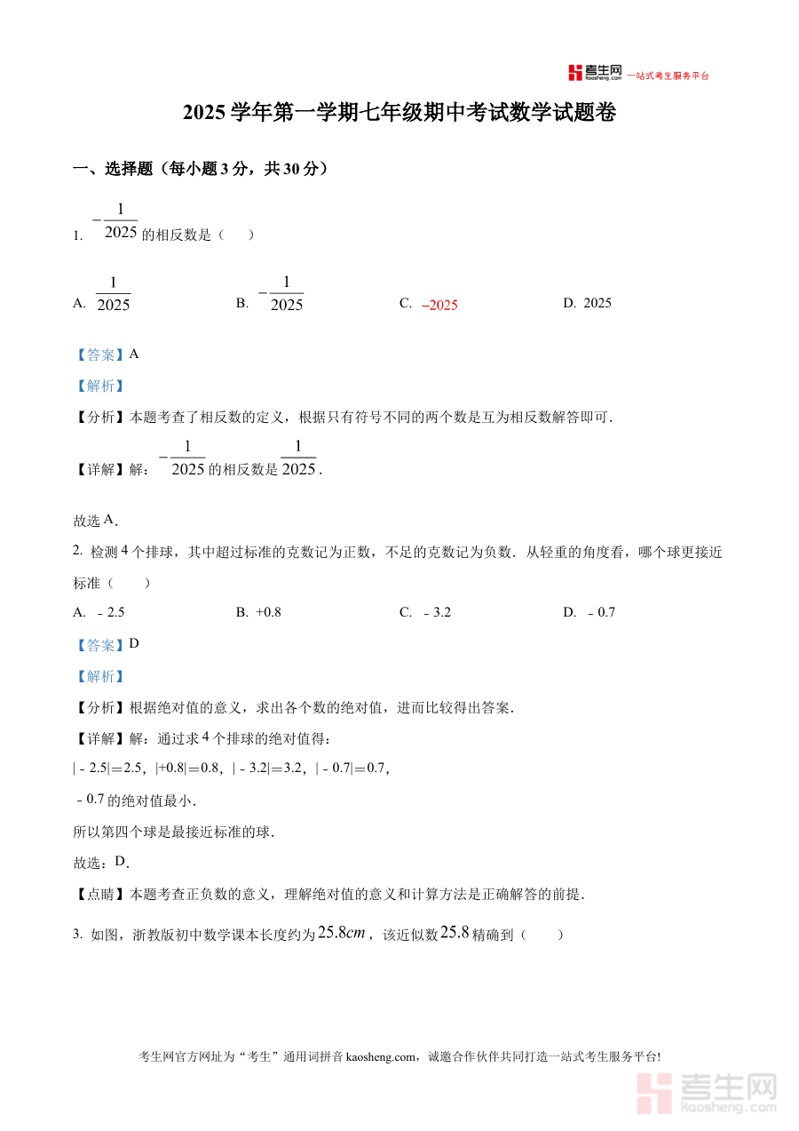 《精品解析:浙江省宁波市鄞州区2025-2026学年七年级上学期11月期中数学试题(解析版)》是针对浙江省宁波市鄞州区2025至2026学年七年级上学期11月期中数学考试的专业备考资料。该资料聚焦特定区域与学年的阶段性数学考试,为使用者提供与本地教学进度匹配的参考内容。