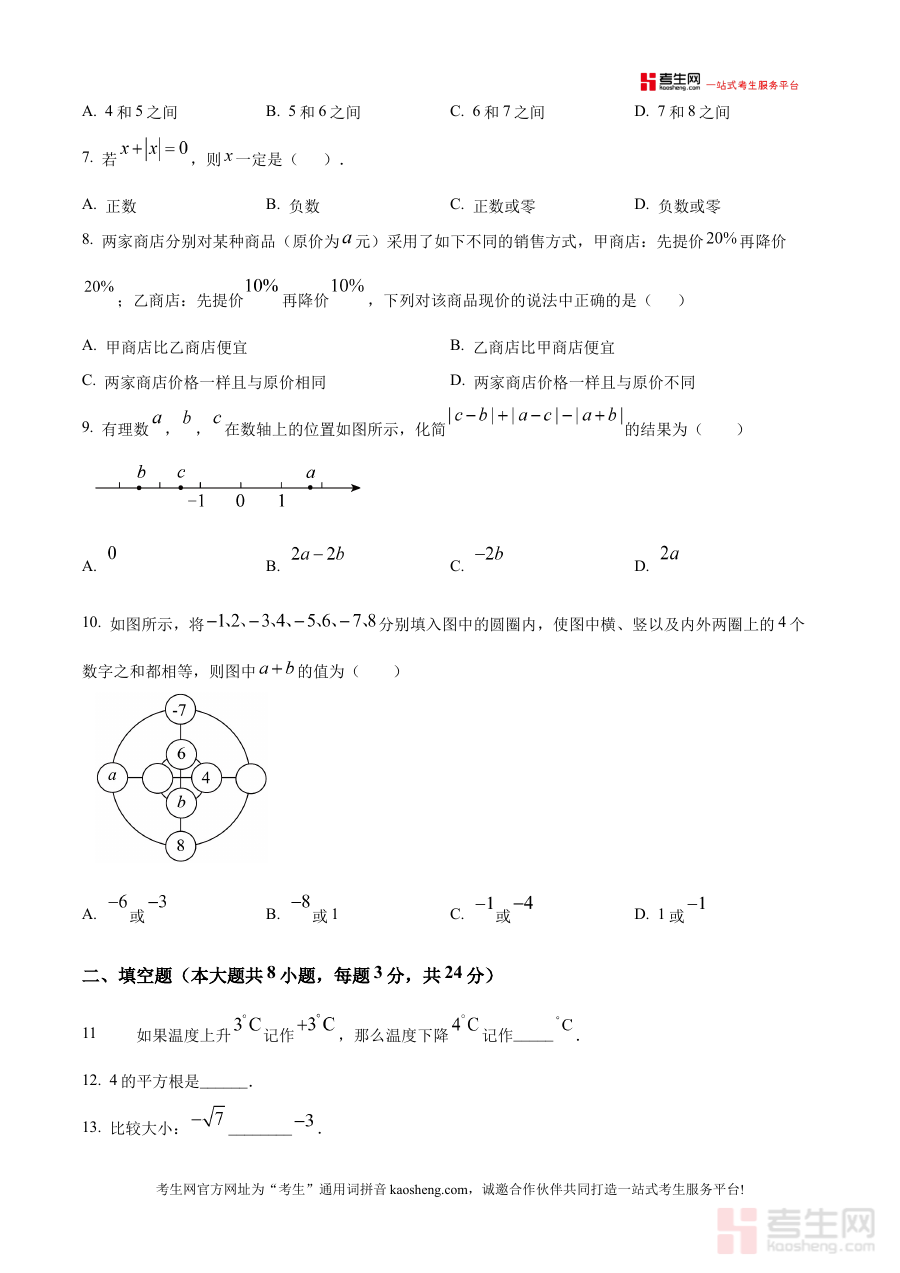 该资料可用于七年级学生进行阶段学情诊断,帮助教师了解学生对前期数学知识的掌握情况,同时也为学生后续备考规划提供参考依据。通过对该试题原卷的使用,能够辅助师生明确阶段性学习的重点与方向,提升备考的针对性与有效性。