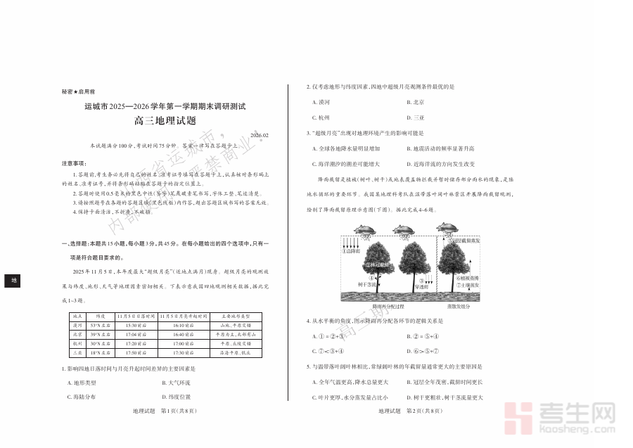 《运城市2025—2026学年第一学期期末调研测试 高三地理》是运城市教育部门针对高三年级地理学科在2025至2026学年第一学期末组织的调研测试相关备考资料,涵盖了该地区高三地理教学阶段性评价的核心导向,为学生提供贴合本地教学实际的复习参考依据,助力学生对接本地期末调研测试的考查需求,是反映本地高三地理教学阶段成果的重要载体。