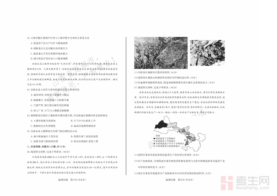 该资料可用于高三学生对自身地理学科阶段性学习成果的诊断与评估,帮助教师精准把握班级整体学习状况并调整后续教学策略,同时为学校层面的教学质量分析提供有效数据支撑,辅助师生明确阶段学习中的优势与不足,进而优化备考方向与计划,提升复习的针对性与效率。