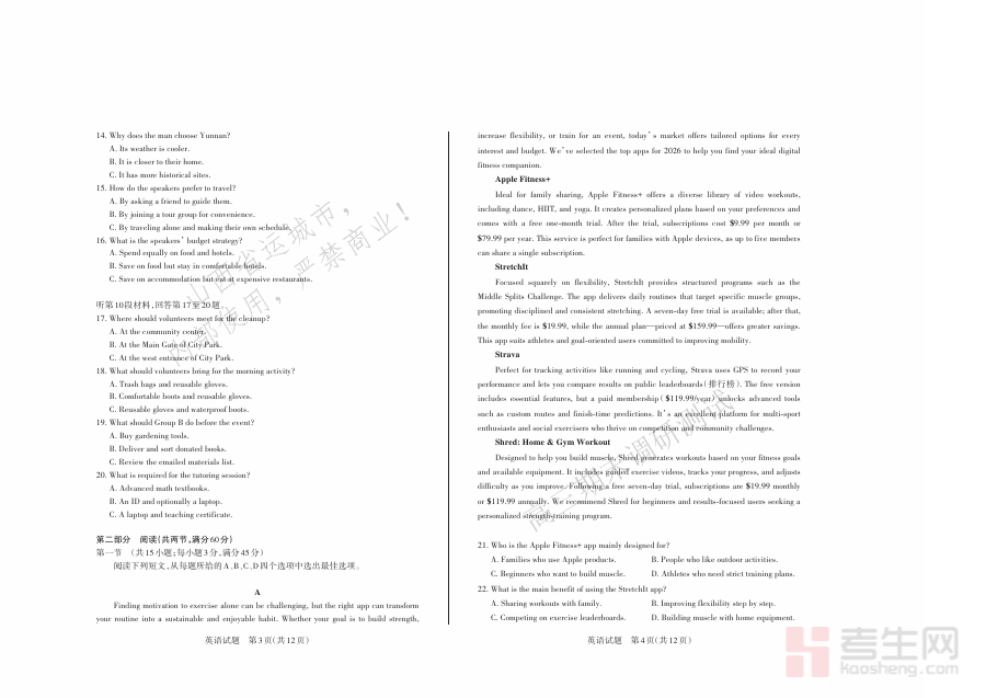 本资料适用于运城市2025—2026学年高三年级的英语教师与学生,对学生而言,参与相关练习能强化阶段知识巩固、提升应试能力;对教师而言,借助测试结果可优化教学策略,更高效地指导学生进行下一阶段的英语备考。