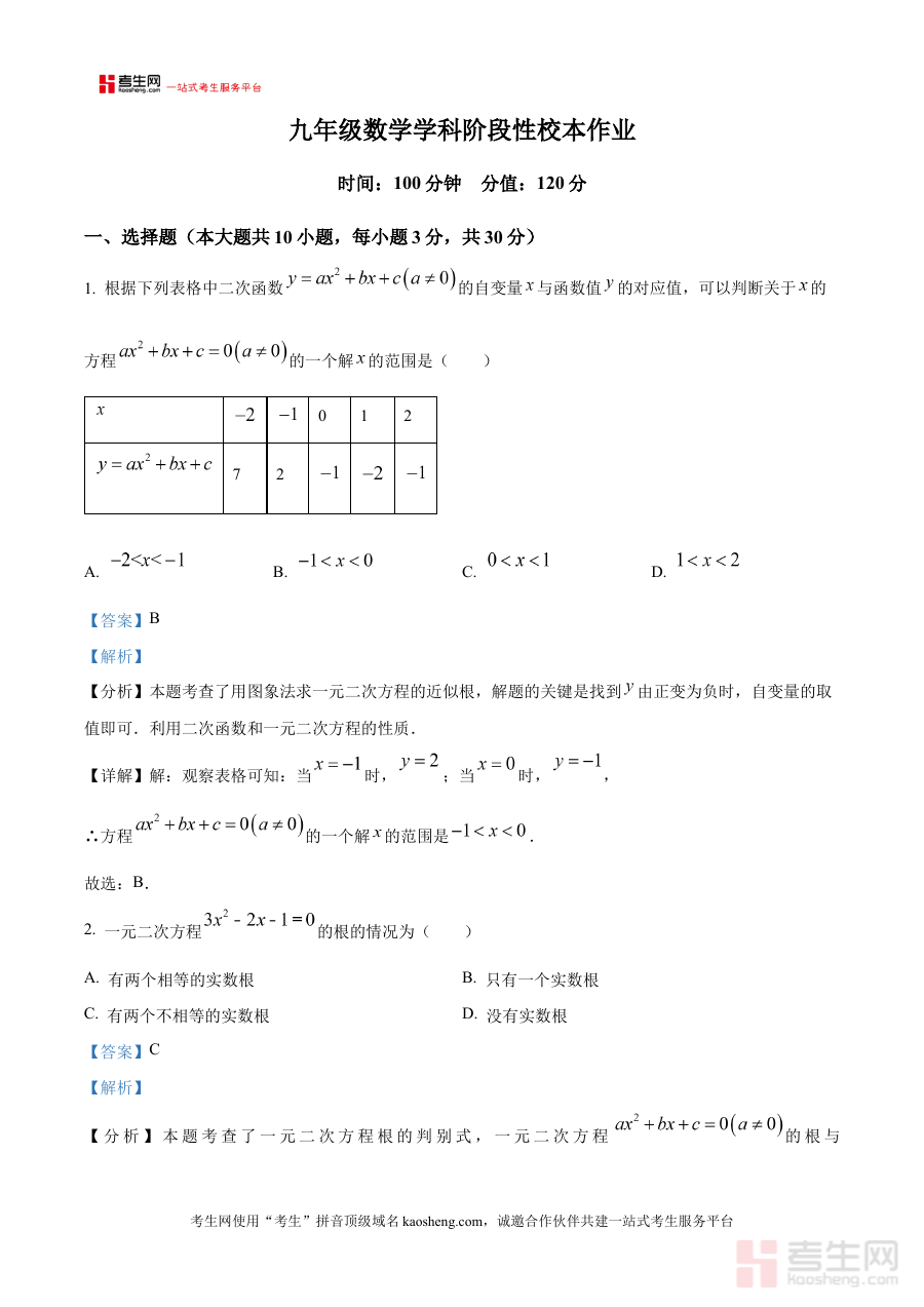 本资料主要适用于河南省郑州市高新区行知中学2025-2026学年上学期九年级学生,可作为第一次月考的复习核心参考材料,其详细解析内容能帮助学生理解试题考查逻辑与解题方法,对巩固阶段所学知识、增强应试技巧具有重要价值。