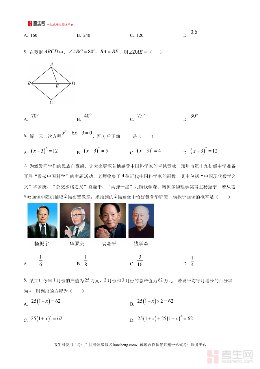 本资料适用于河南省郑州十九中教育集团的九年级学生,可作为期中前的自我检测工具,也可供该集团内数学教师用于课堂练习或阶段性评估;同时,对于希望了解该教育集团期中数学考试模式的其他学校师生及家长,也具有一定的参考价值,有助于他们更有针对性地开展数学学科的阶段复习与备考规划。