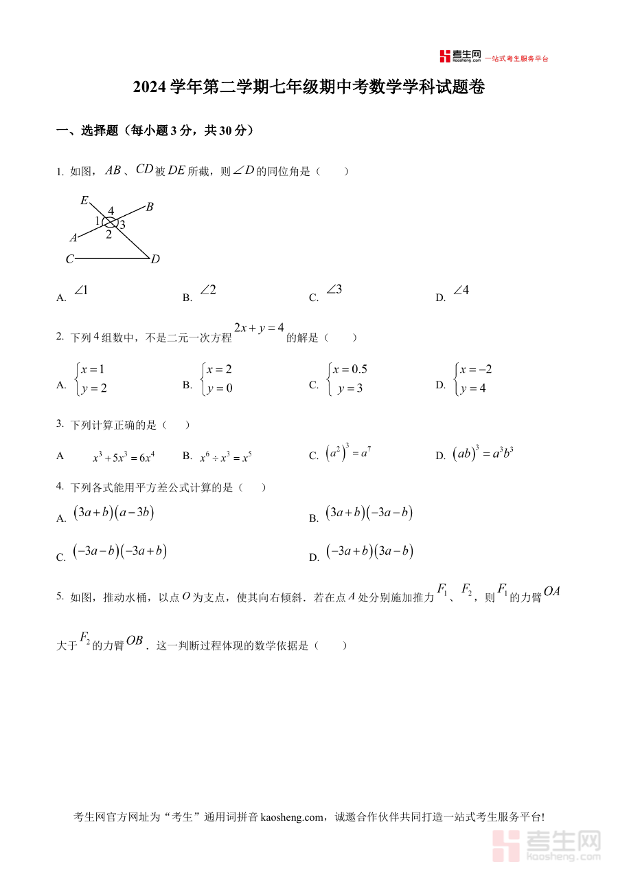 《精品解析:浙江省宁波市余姚市城区初中 2024-2025学年七年级下学期4月期中数学试题(原卷版)》是针对2024-2025学年浙江省宁波市余姚市城区初中七年级下学期4月期中数学考试编制的备考资料,精准对应该区域该阶段的数学期中检测需求。
