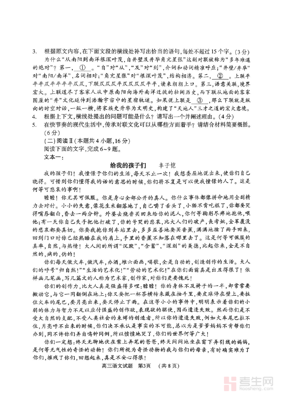 该资料可用于高三学生进行学情自我诊断,清晰识别自身在语文知识掌握、能力应用等方面的薄弱环节;同时为教师开展教学评估、优化复习策略提供客观依据,支持精准规划后续备考路径;作为阶段检测工具,能有效检验学期内语文学习的综合成效,确保学习目标达成。